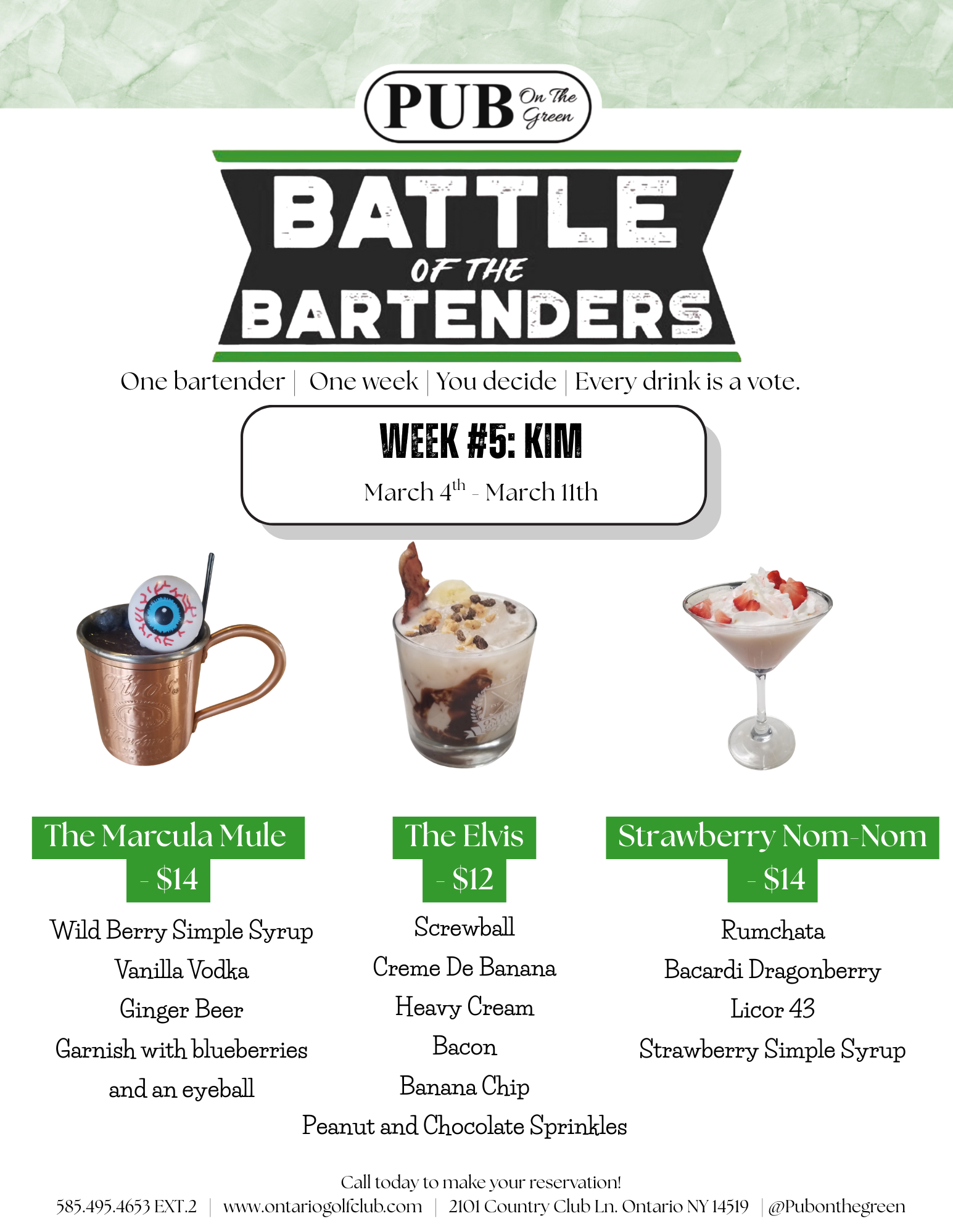 Enjoy an elevated dining experience at Pub on the Green, where we combine delicious cuisine with the ambiance of live entertainment. Join us on Thursdays and Saturdays for a perfect blend of music and great food, set against the picturesque backdrop of the adjacent golf course. It's the ideal way to unwind and savor the essence of good food, good company, and good times.